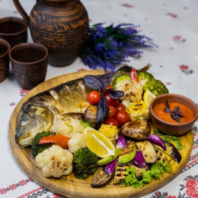 Platou cu pește copt și legume