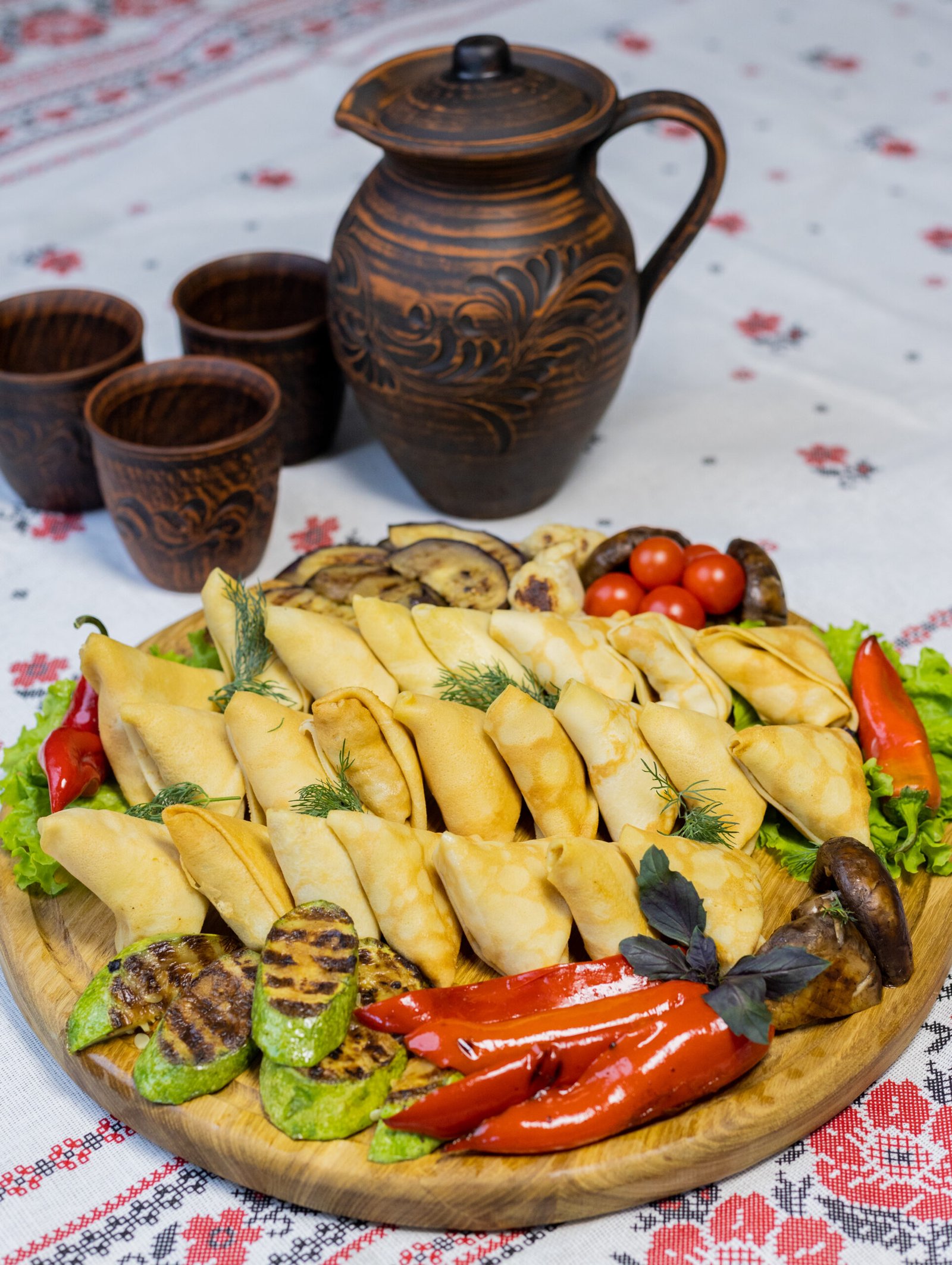Clătite fine umplute cu tocătură delicată de carne, legume și mirodenii, rumenite ușor la cuptor pentru gust bogat și textură crocantă la exterior. Servite fierbinți, cu sos aromat și verdeață proaspătă.