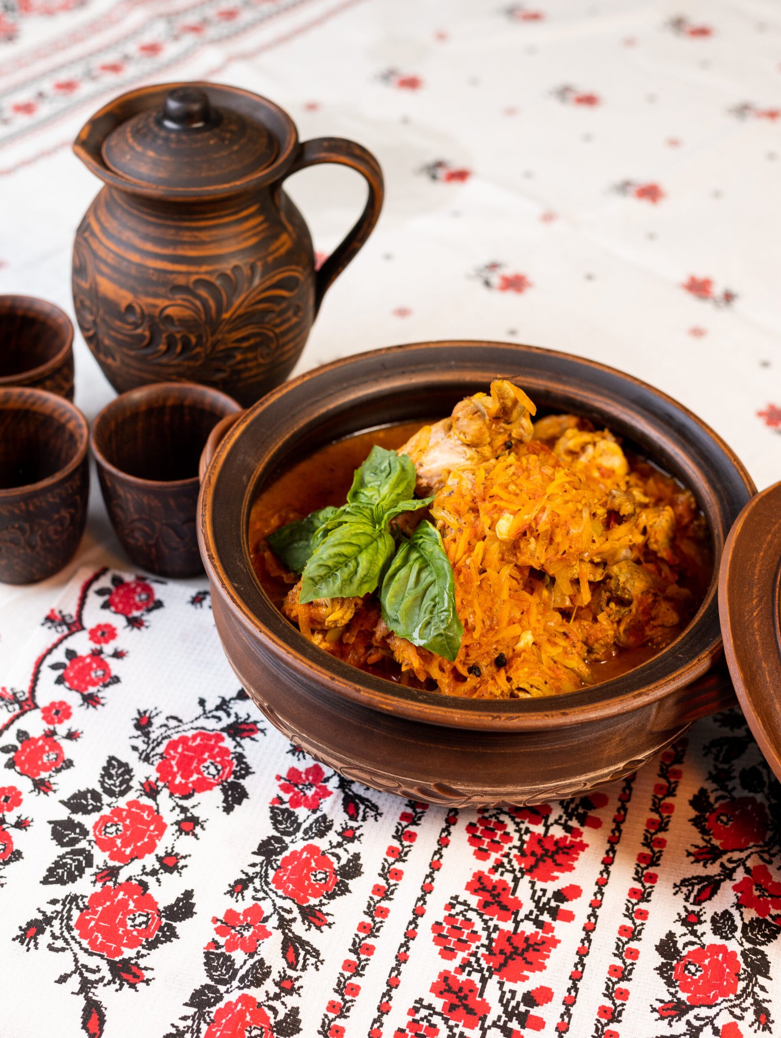 Carne fragedă de iepure gătită lent la ceaun, cu ceapă, morcov, usturoi și mirodenii aromate. Preparatul este înăbușit în vin alb și sos propriu, până capătă gust intens și textură fină. Servit fierbinte, cu mărar proaspăt și legume sotate.